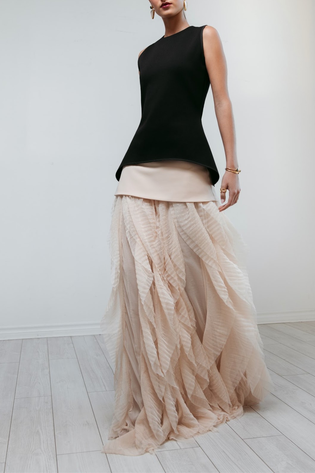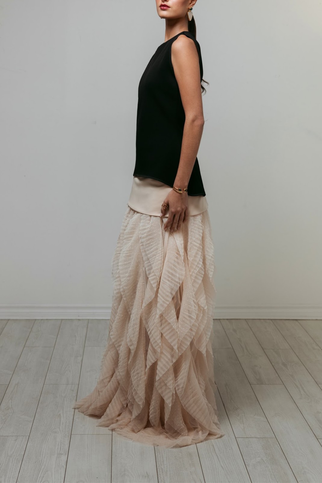 This layered Gown skirt is made with polka dot pleated tulle to give a soft and romantic look.